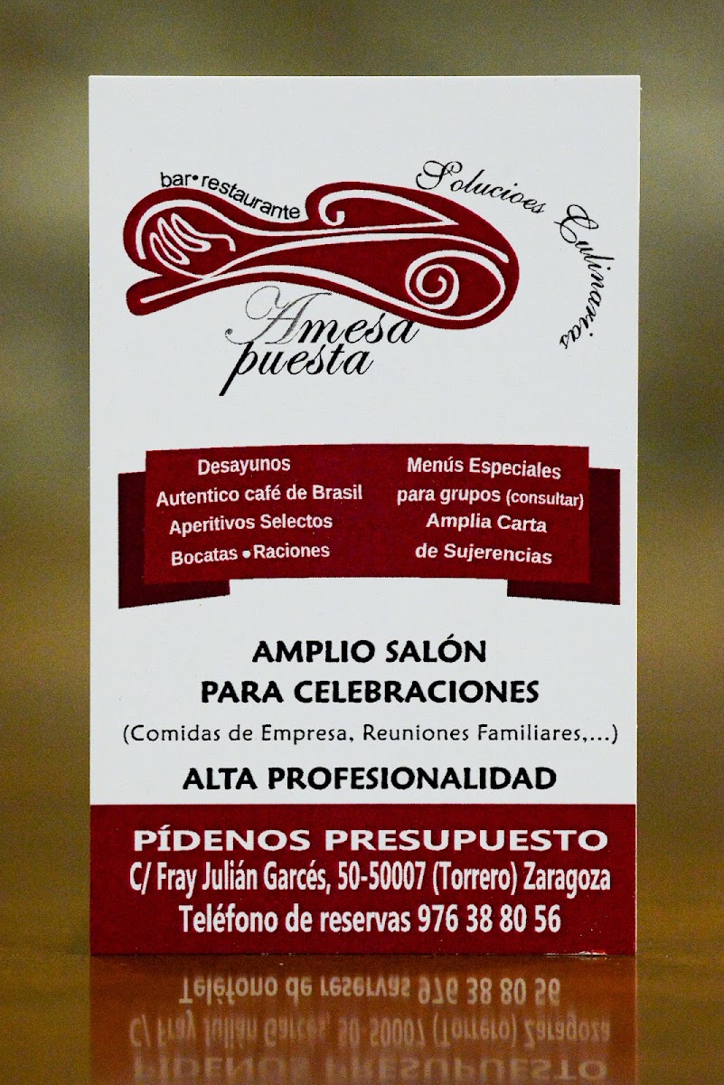 Restaurante A Mesa Puesta Menu